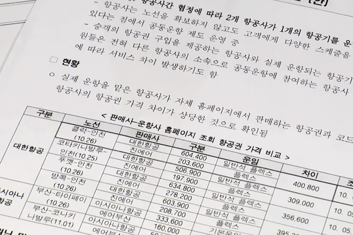 이렇듯 대형 항공사와 저비용 항공사의 공동운항 시 운임 차액에 대한 불만이 꾸준히 제기되고 있죠.