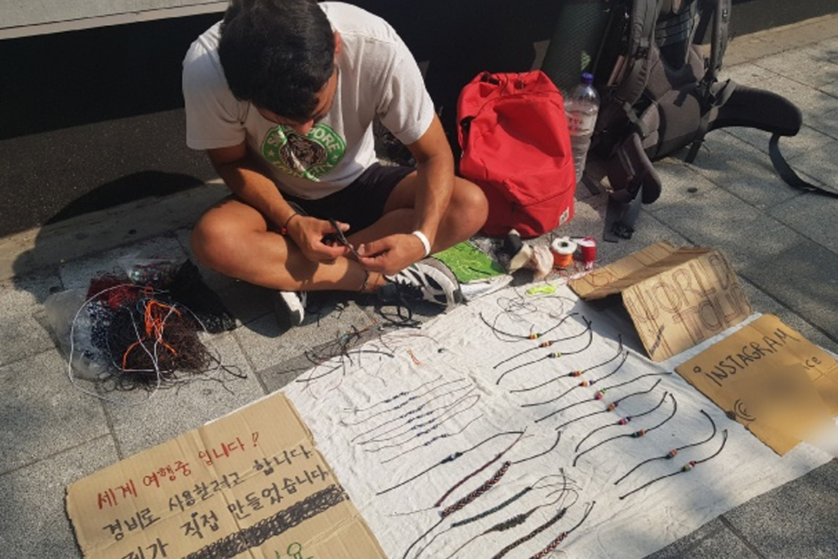 한국에서도 구걸하는 서양인 여행객을 볼 수 있습니다.