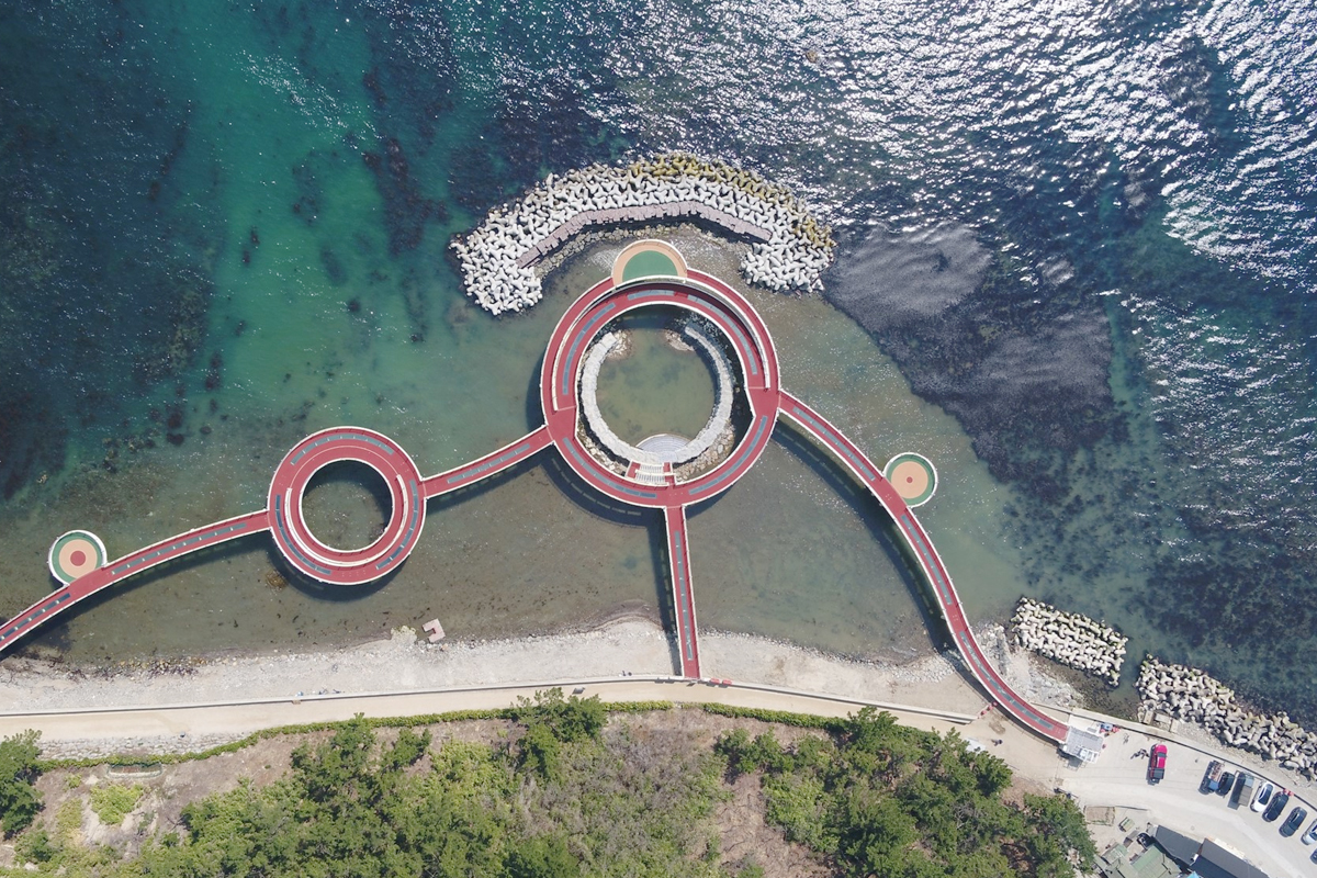 해상 스카이워크 중앙에는 둥근 형태의 해수 풀장이 있는데요. 바닷물이 투명하고 깨끗해, 이곳에 내려가면 바닷고기를 눈으로 볼 수 있다고 합니다.