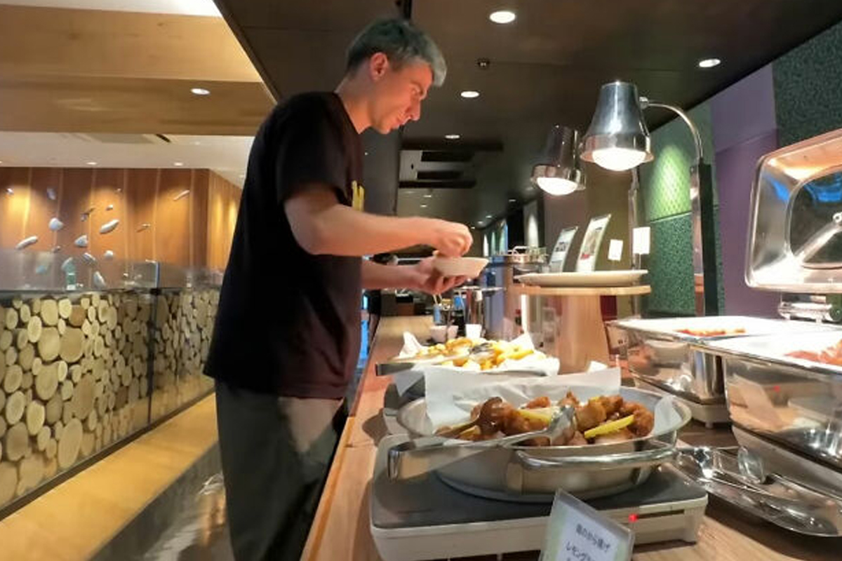 마치 자신이 호텔에 투숙하고 있는 것처럼 연기하면서 조식을 먹었는데요.