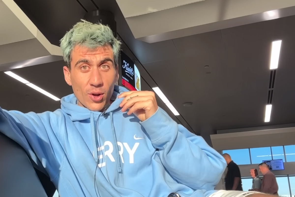 그는 상의를 입지 않은 채 영상에 등장한 후 공항에 있는 사람들에게 상의를 줄 수 있냐고 구걸했습니다.
