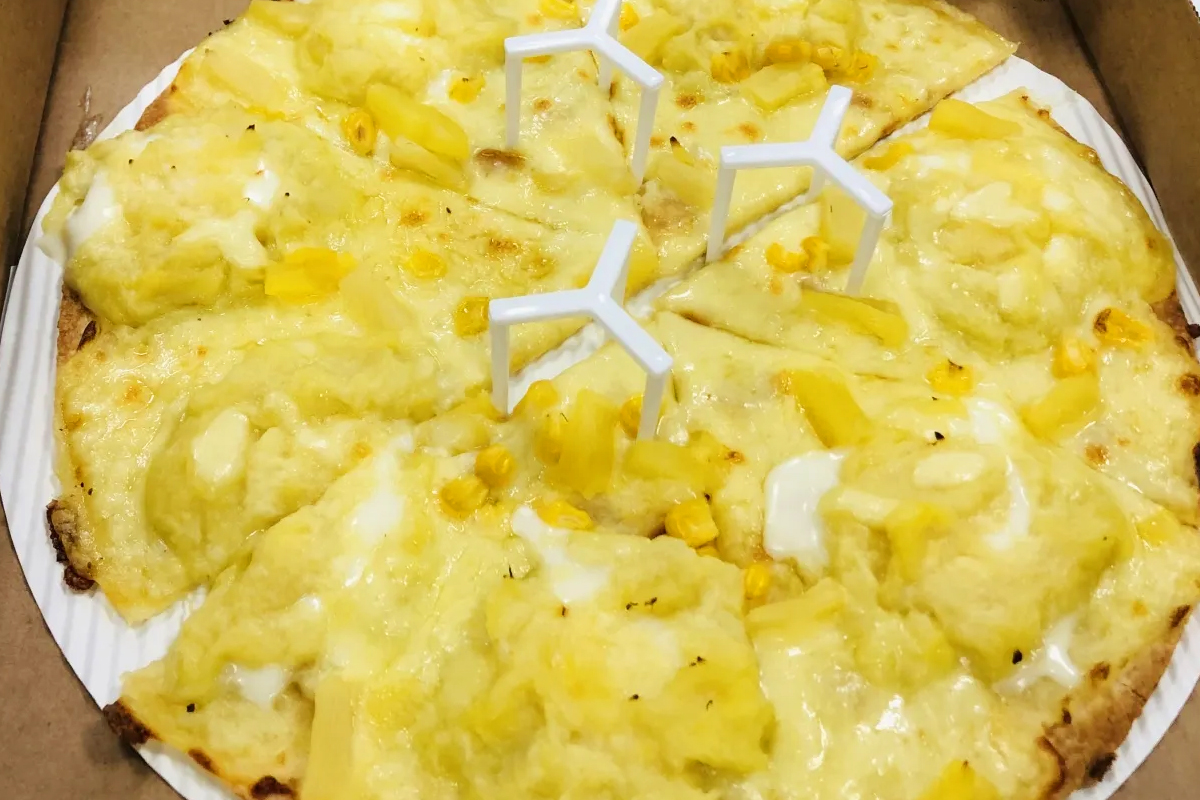 태국의 두리안과 대만 타이난의 망고를 결합해 ‘두리안과 망고 워터 골든피자’를 만들었습니다.