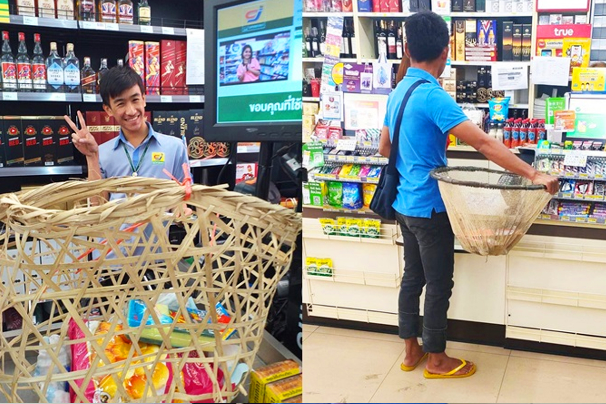 태국 소셜 미디어에는 장을 보러 가는 태국인들이 비닐봉지 대신 밥솥, 옷걸이, 수레 등을 활용하는 사진이 유행처럼 확산했습니다.