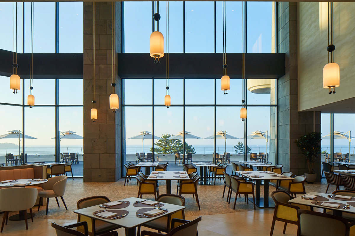 호텔에는 전면 통창으로 이루어져 제주의 바다를 바라보며 식사할 수 있는 올데이 다이닝 레스토랑 ‘콘페티’가 자리 잡고 있습니다.