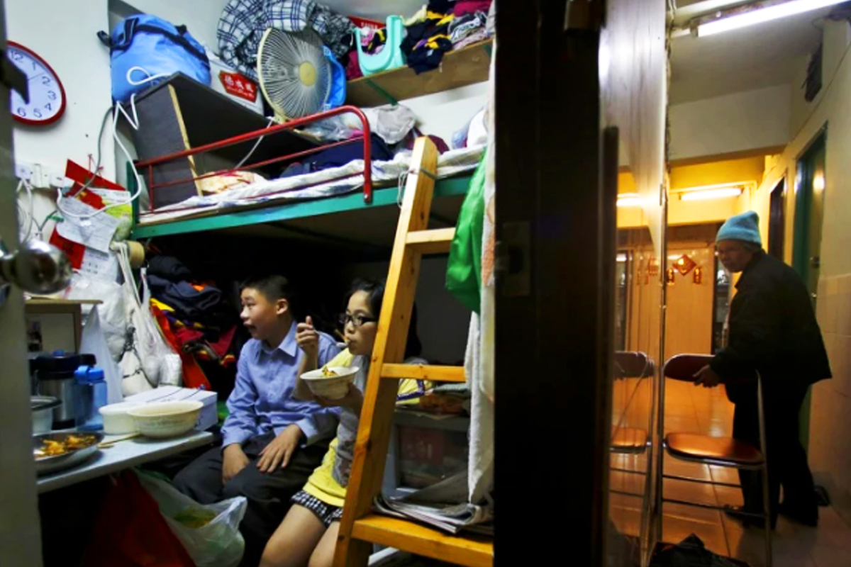 홍콩에서는 집 하나를 작은 방 여러 개로 나눠 놓은 칸막이 아파트를 볼 수 있습니다.