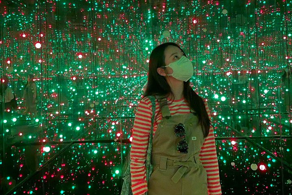 안소희는 본태 박물관의 포토존으로 자리 잡은 하트 조형물 앞에서 사진을 남겼습니다.