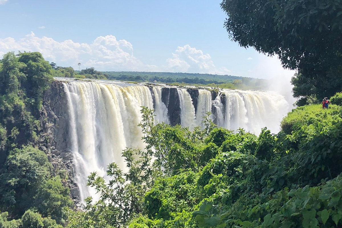 빅토리아 폭포는 아프리카 짐바브웨와 잠비아의 경계인 잠베지 강 상류에 있다.