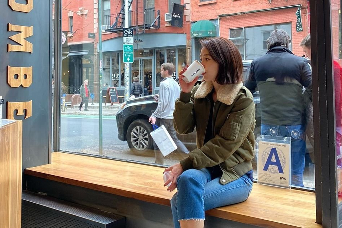 이진은 자신의 인스타그램에 ‘La Colombe Coffee’에서 커피를 마시고 있는 사진을 게재했습니다.