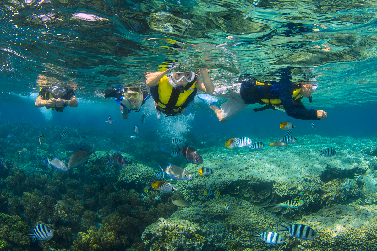 선상에서 돌고래와 유영하는 모습을 보고, 바닷속 형형색색 아름다운 열대어와 산호초를 볼 수 있는 돌핀 크루즈.