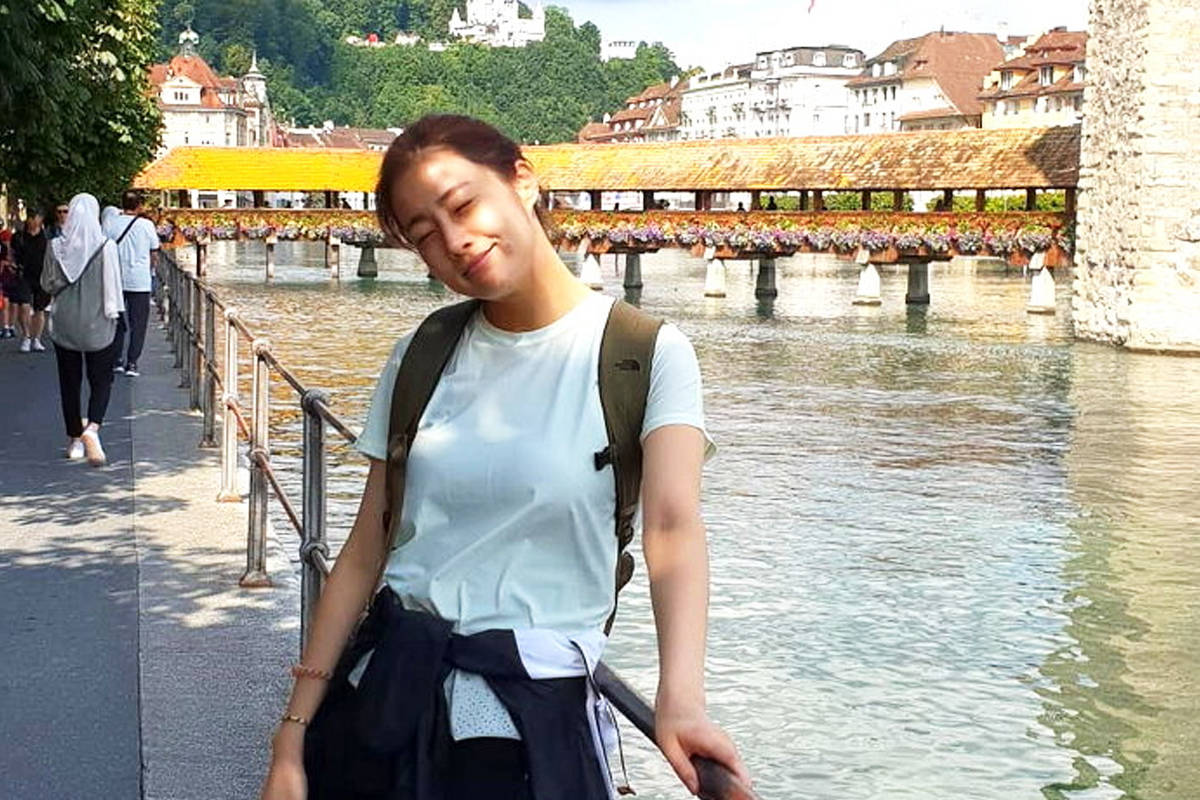 공개된 사진 속에는 유람선에 탑승해 루체른 호수를 배경으로 앉아 있는 강소라의 모습이 담겨 있었습니다.