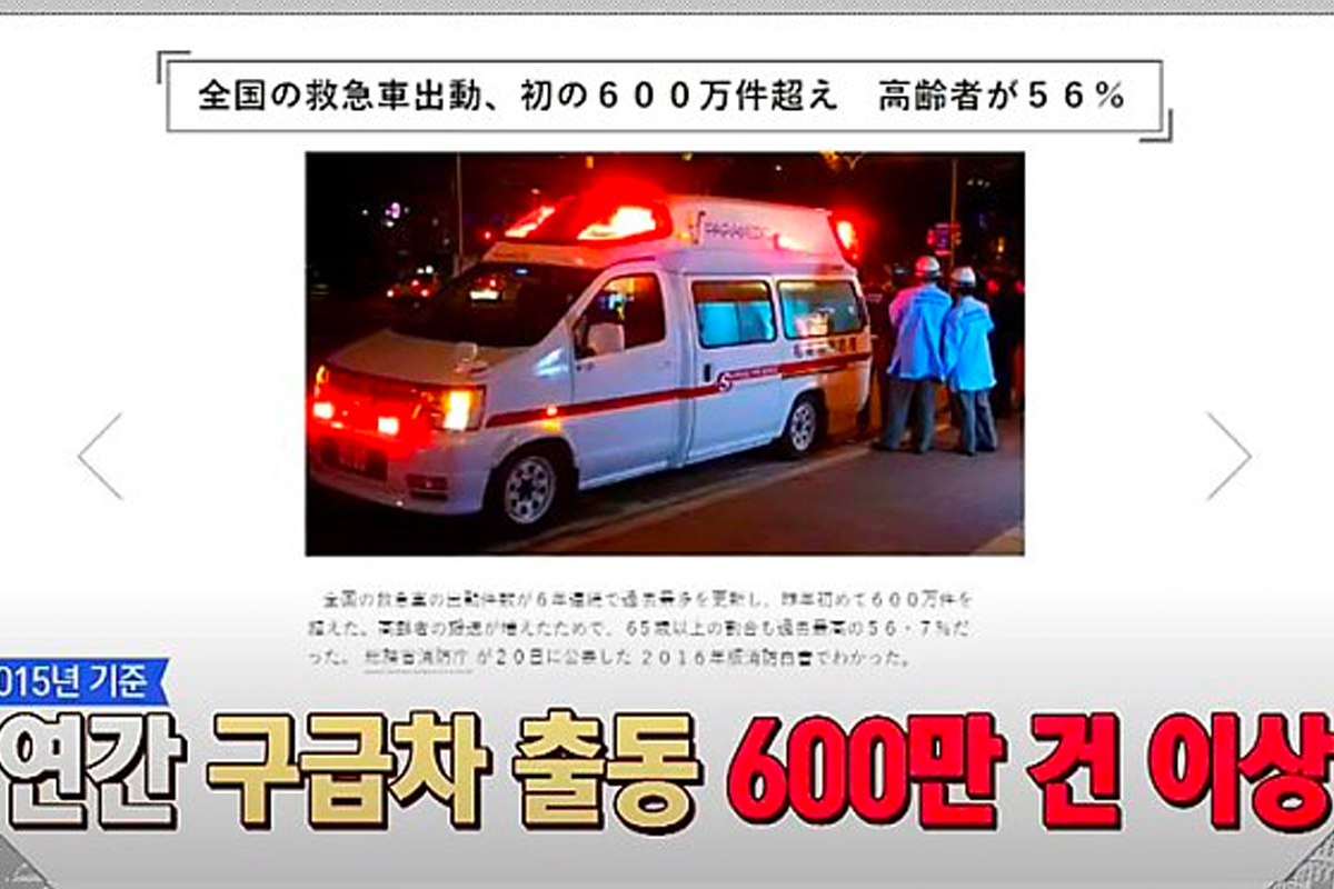 2015년 기준 일본의 연간 구급차 출동은 600만 건 이상에 달하며 정부에서 유료화를 검토화한다고 밝혔습니다.