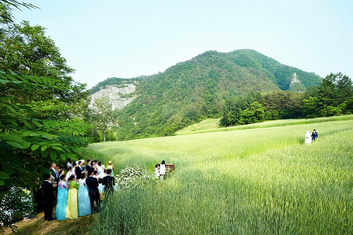 원빈 이나영이 결혼식을 올린 대촌마을 내 밀밭은 사방이 산과 강으로 둘러싸였습니다.
