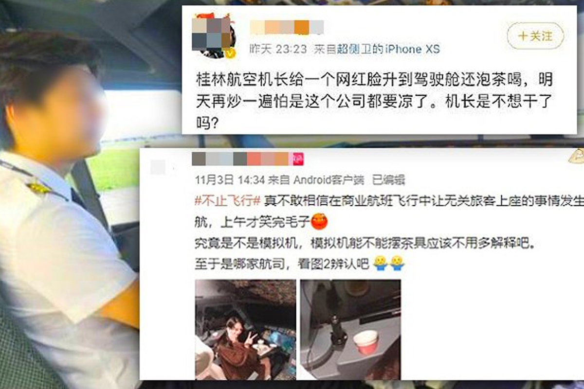 중국에서도 여객기의 조종석은 본래 민간인 출입이 엄격히 통제되는 곳입니다. 하지만 이 조종사는 조종석에 여성 승객을 데려와 사진을 찍도록 한 것인데요.