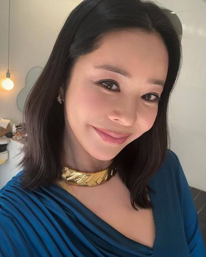 50대의 나이지만 여전히 연예계 대표 패션 아이콘인 이혜영. 푸른색의 과감하고 화려한 초미니 원피스에 금빛 악세사리들로 포인트를 준 모습으로 등장했습니다.