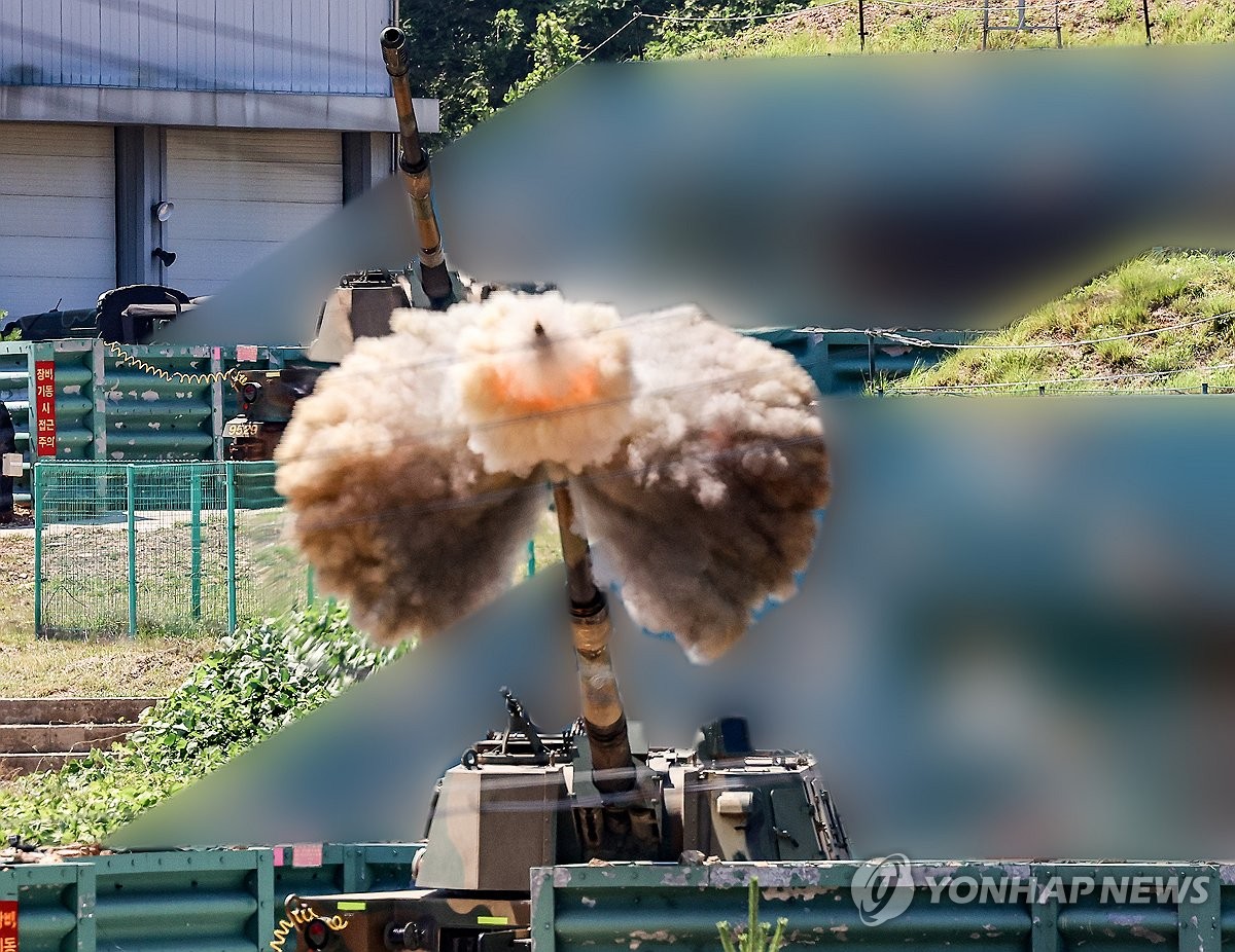 (연평도=연합뉴스) 김도훈 기자 = 서북도서 일대에서 해상사격훈련이 실시된 26일 인천시 옹진군 대연평도에서 K-9 자주포가 화염을 내뿜고 있다.