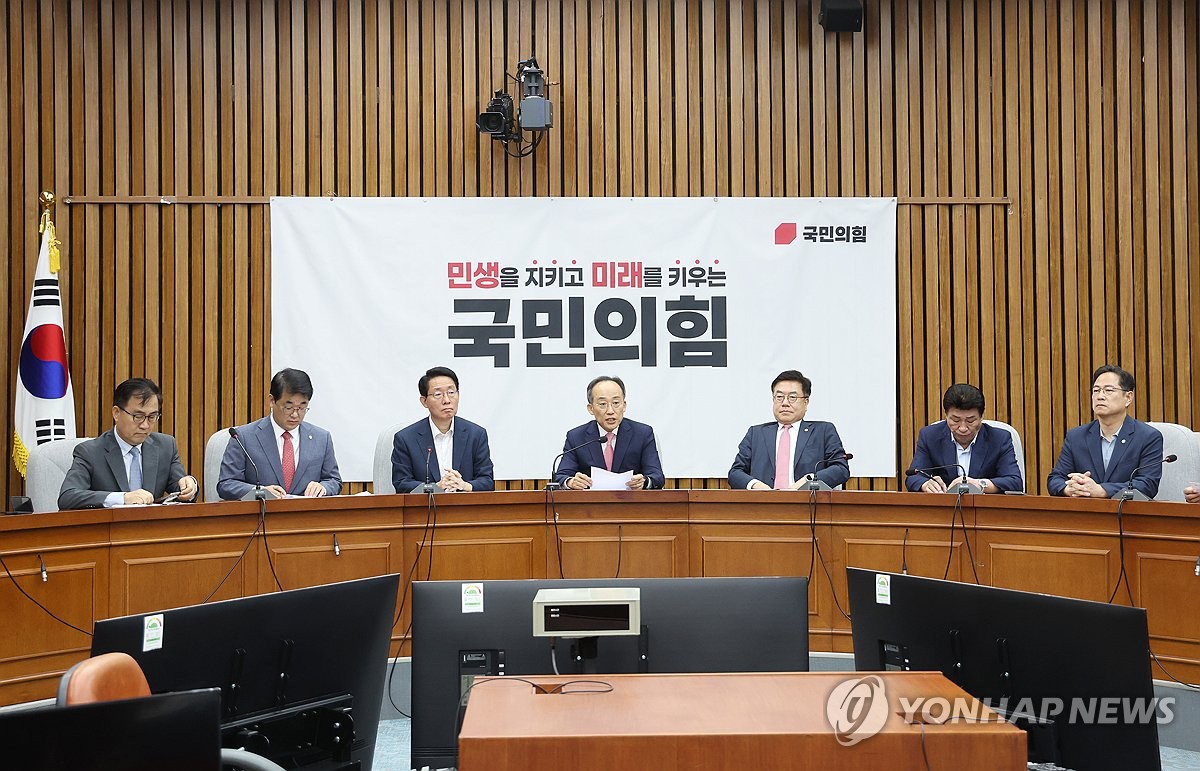 (서울=연합뉴스) 신준희 기자 = 국민의힘 추경호 원내대표가 3일 국회에서 열린 원내대책회의에서 발언을 하고 있다. 2024.9.3 hama@yna.co.kr