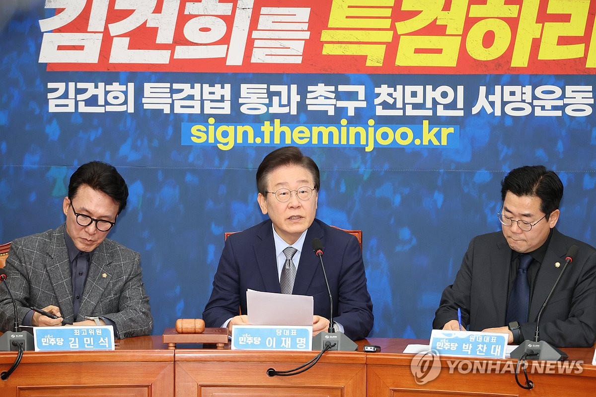 (서울=연합뉴스) 김주성 기자 = 더불어민주당 이재명 대표가 13일 오전 서울 여의도 국회에서 열린 최고위원회의에서 발언하고 있다. 2024.11.13 utzza@yna.co.kr