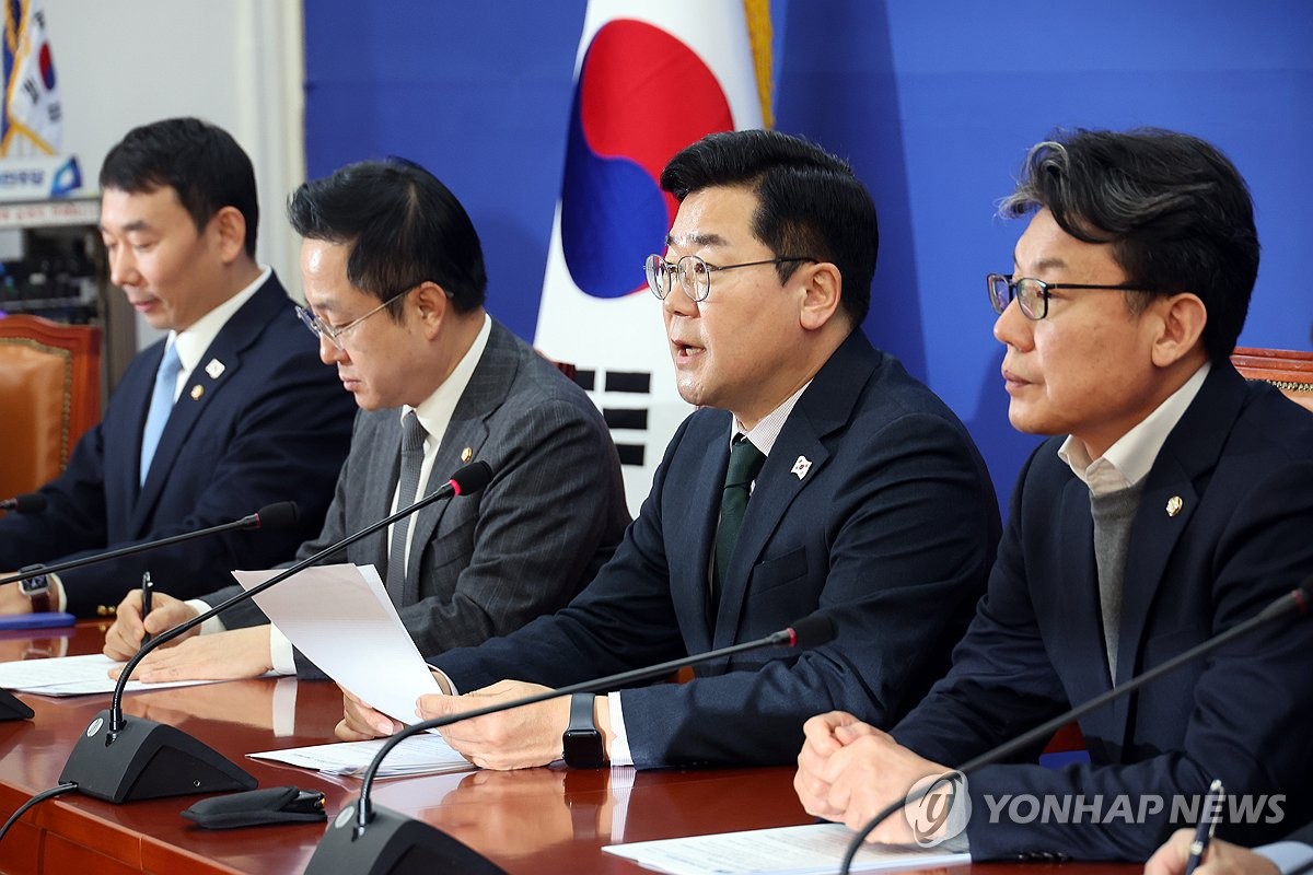 (서울=연합뉴스) 박동주 기자 = 더불어민주당 박찬대 원내대표가 19일 오전 국회에서 열린 정책조정회의에서 발언을 하고 있다. 2024.12.19 pdj6635@yna.co.kr