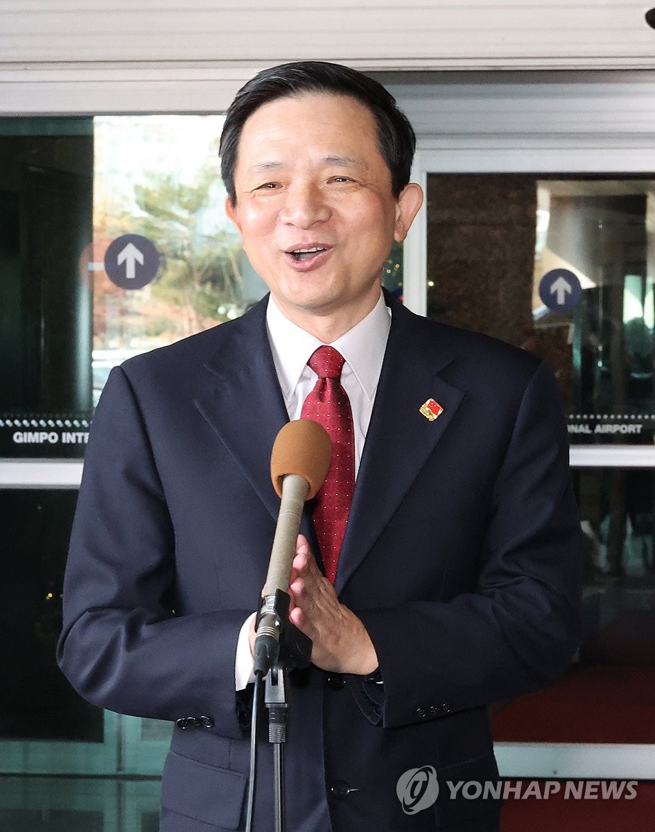 (서울=연합뉴스) 이진욱 기자 = 다이빙 신임 주한 중국대사가 27일 오후 김포공항을 통해 입국, 기자회견을 하고 있다. 2024.12.27 cityboy@yna.co.kr