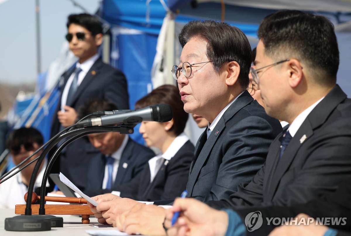 (서울=연합뉴스) 김성민 기자 = 더불어민주당 이재명 대표가 26일 서울 종로구 광화문 천막당사에서 열린 최고위원회의에서 발언하고 있다. 2025.3.26 ksm7976@yna.co.kr