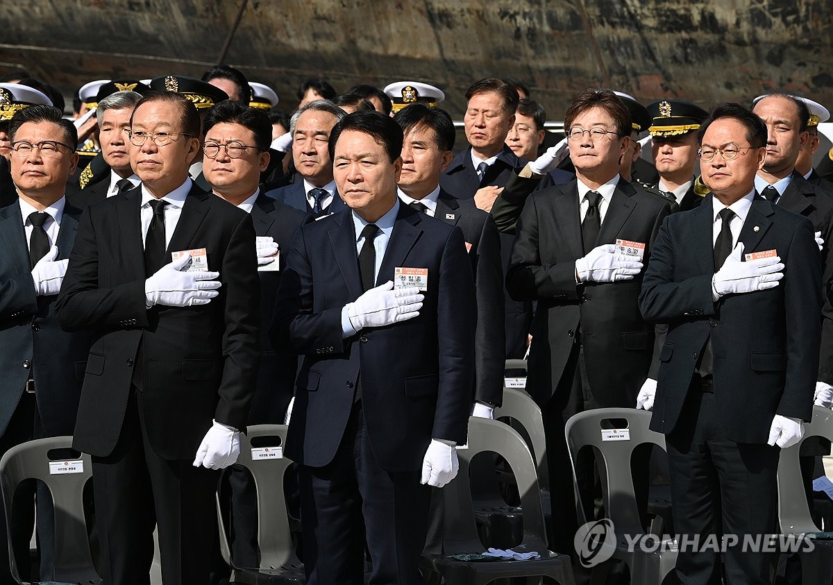 권영세 비상대책위원장은 이날 김상훈 정책위의장, 이양수 사무총장, 성일종 국회 국방위원장 등과 함께 경기도 평택에 있는 해군 제2함대사령부에서 열린 천안함 46용사 추모식에 참석했다.
