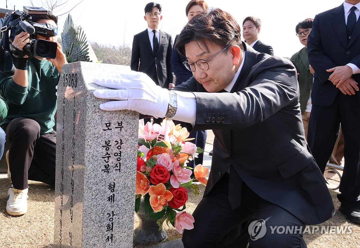 권성동, 46용사 묘역 참배…"野, 자폭·자작설 지금까지 사과 없어"