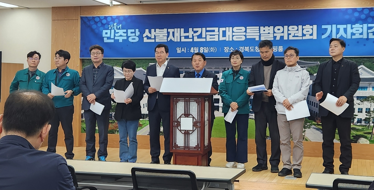 특위는 기자회견에서 앞서 경북도청에서 산불 피해 대처 현황을 점검했으며 기자회견 후에는 산불 피해 중앙합동 지원센터와 남후농공단지를 방문해 피해 현황을 확인하고 의견을 청취했다.