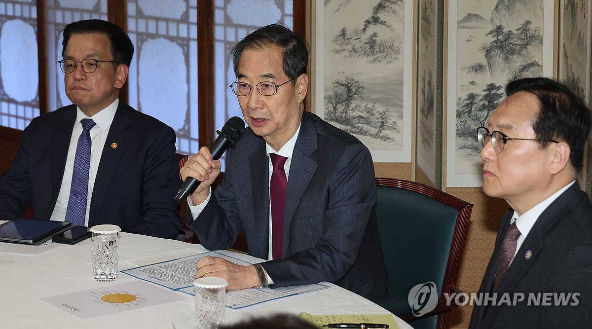 (서울=연합뉴스) 한상균 기자 = 한덕수 대통령 권한대행 국무총리가 14일 서울 공관에서 경제안보전략 TF 회의를 하고 있다. 2025.4.14 xyz@yna.co.kr
