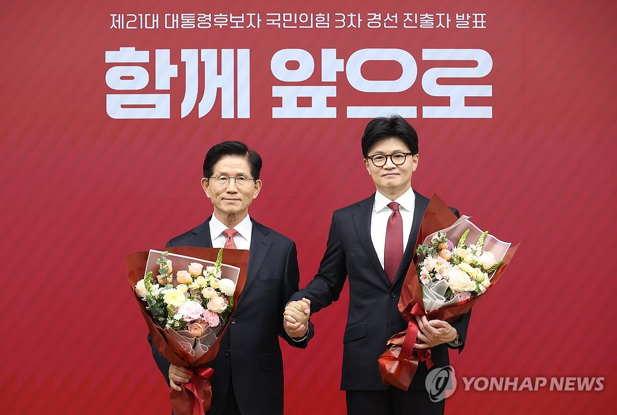 (서울=연합뉴스) 이유미 조다운 기자 = 국민의힘 대선 최종 경선에 김문수·한동훈 후보(이름순)가 진출했다.