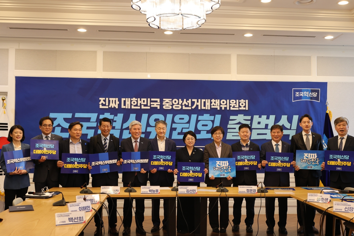 (서울=연합뉴스) 김영신 기자 = 6·3 대통령 선거에 후보를 내지 않고 더불어민주당 이재명 후보를 지지하기로 한 조국혁신당은 13일 민주당 중앙선거대책위원회 산하 기구 '조국혁신위원회'를 출범했다.