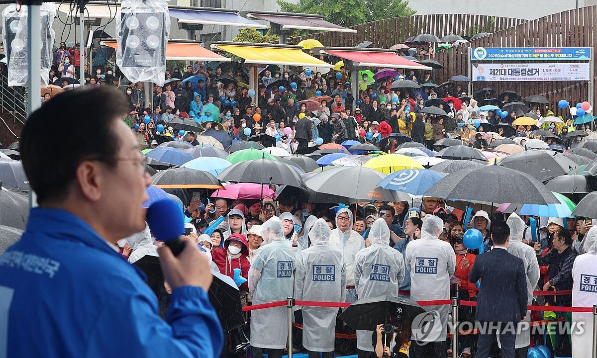 이 후보는 여수 이순신 광장 유세에서 "대한민국의 주인은 바로 국민"이라며 "이 빗속에 여러분이 나온 것은 새로운 나라를 만들어야 한다는 절박함과 간절함도 있었을 것"이라고 말했다.