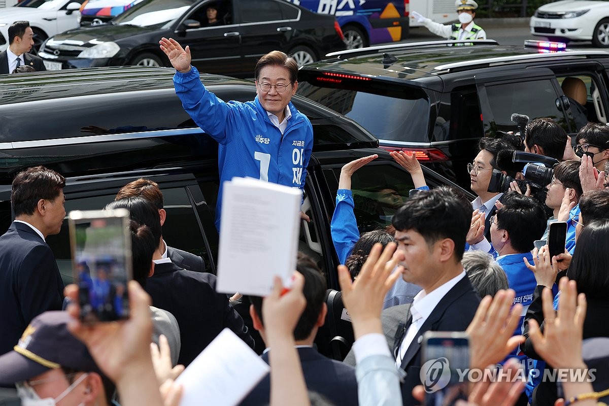 (서울=연합뉴스) 안정훈 기자 = 더불어민주당 이재명 대선 후보는 19일 지방 유세 일정을 마치고 서울 지역 표심 잡기에 나선다.