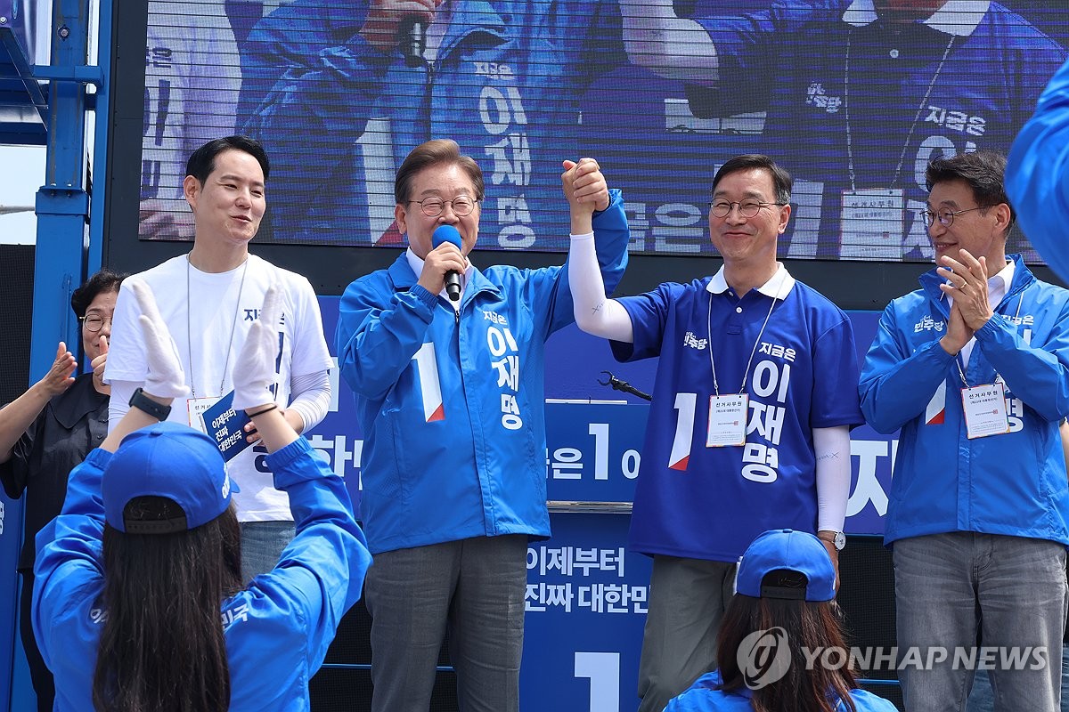 이 후보는 "여러분이 역사적 증인이다. 여러분의 행동에 따라 대한민국의 운명이 갈린다"며 "이재명을 뽑는 게 아니라 여러분 스스로를 이 나라 대통령으로 뽑는, 진짜 국민이 주인인 대한민국을 만드는 선거"라면서 투표를 독려했다.