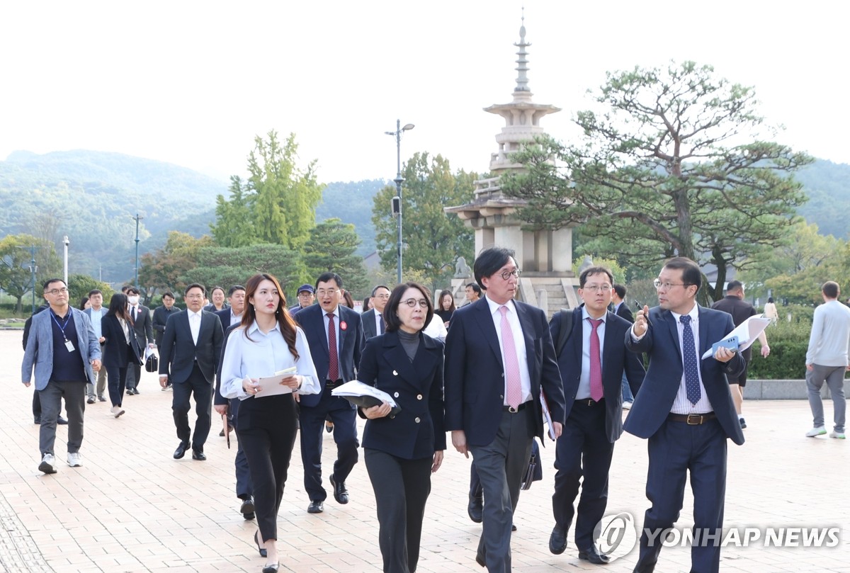 (서울=연합뉴스) 장호진 대통령 외교안보특별보좌관, 강인선 외교부 차관 등 아시아태평양경제협력체(APEC) 정상회의 정부합동 현장답사단이 31일 내년 정상회의 개최 도시인 경상북도 경주시를 방문해 준비상황을 점검했다고 외교부가 밝혔다. 2024.10.31