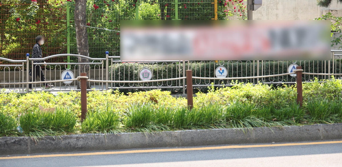 초등학교 주변 인도에 이 현수막이 걸리자 보행 안전을 우려하는 민원이 잇따라 접수됐다.