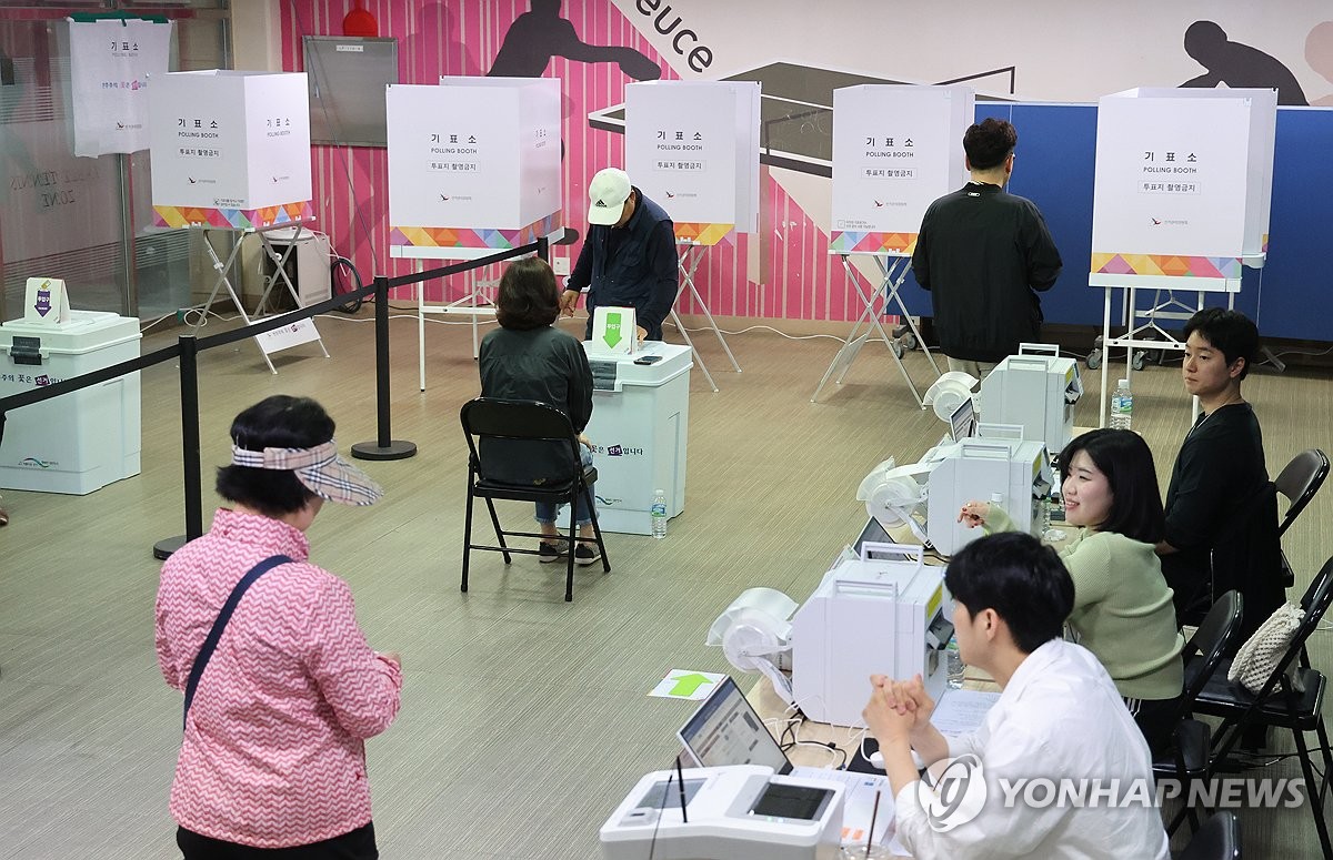 (부산=연합뉴스) 강선배 기자 = 제21대 대통령 선거 사전투표 둘째 날인 30일 부산 수영 동원로얄듀크 101동 지하 휘트니스센터에 마련된 사전투표소에서 유권자들이 소중한 한표를 행사하고 있다. 2025.5.30 sbkang@yna.co.kr