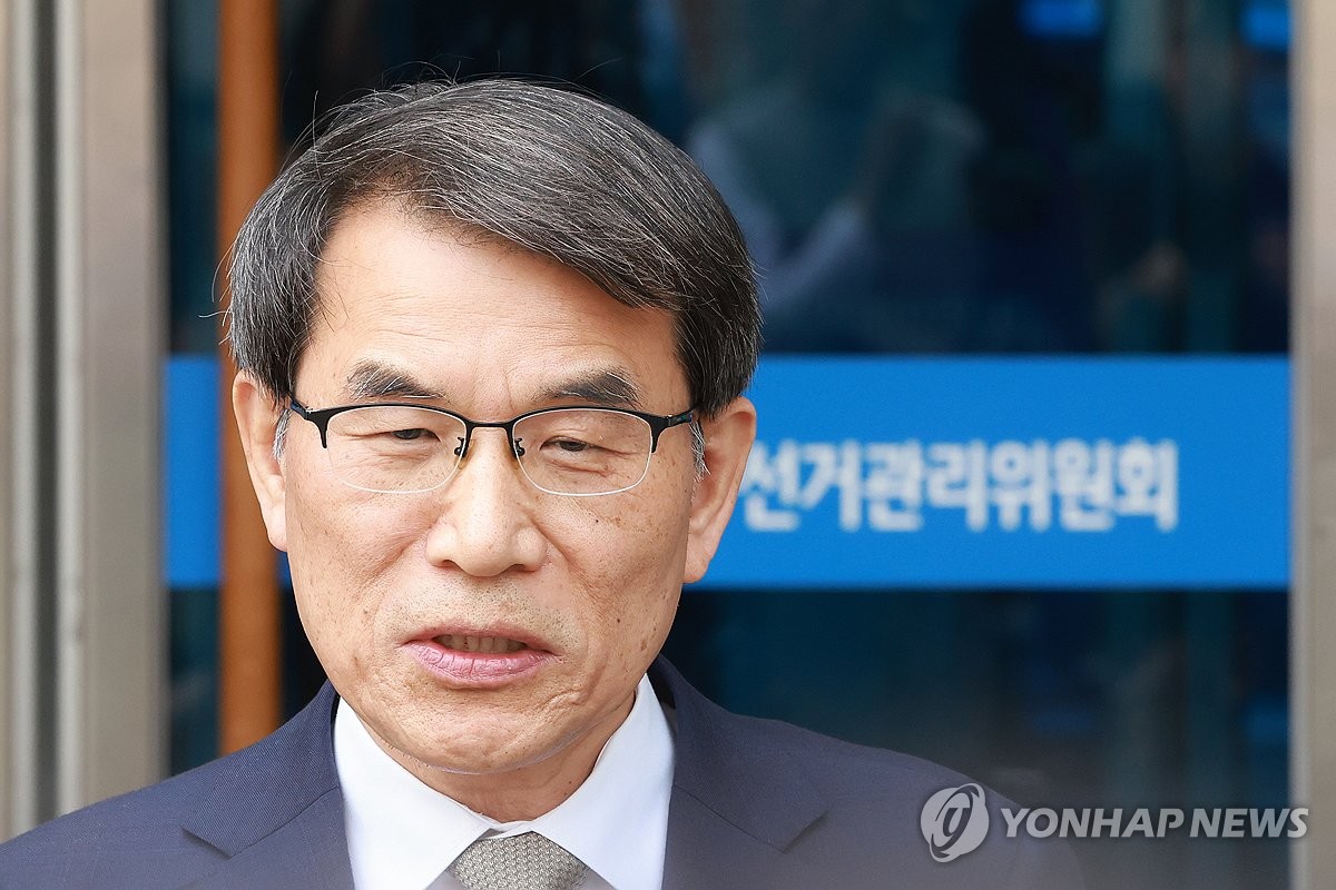 (서울=연합뉴스) 신현우 기자 = 노태악 중앙선거관리위원장이 31일 회송용 봉투 접수 과정과 투표함 보관 등을 살피기 위해 서울 성동구선거관리위원회에 방문, 사전투표 관리 등과 관련해 입장을 밝히고 있다. 2025.5.31 nowwego@yna.co.kr