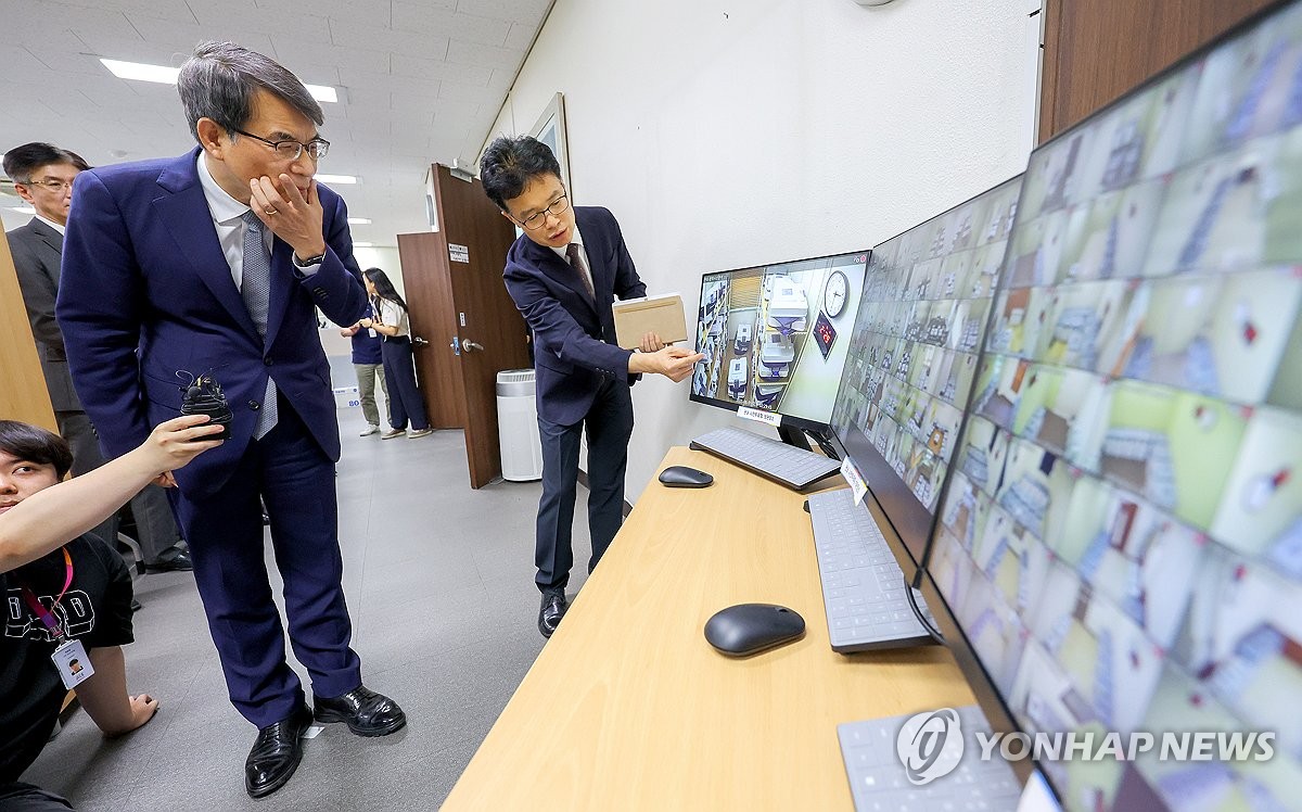 (수원=연합뉴스) 홍기원 기자 = 노태악 중앙선관위원장이 지난 1일 수원시 영통구 경기도선거관리위원회에 방문해 사전우편투표함 보관상황을 점검하고 있다. 2025.6.1 [공동취재] xanadu@yna.co.kr