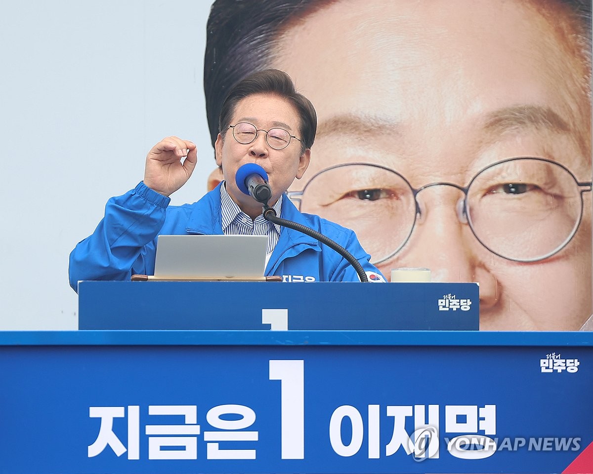 (서울=연합뉴스) 김도훈 기자 = 더불어민주당 이재명 대선 후보가 선거를 하루 앞둔 2일 서울 강북구 북서울꿈의숲 서문광장에서 시민들에게 지지를 호소하고 있다. 2025.6.2 superdoo82@yna.co.kr