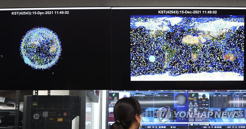 (대전=연합뉴스) 김준범 기자 = 15일 오전 대전시 유성구 화암동 한국천문연구원 우주물체감시실에서 지구 주변에 있는 인공위성 4만9천381개의 실시간 모습이 화면에 나타나고 있다. 2021.12.15 psykims@yna.co.kr