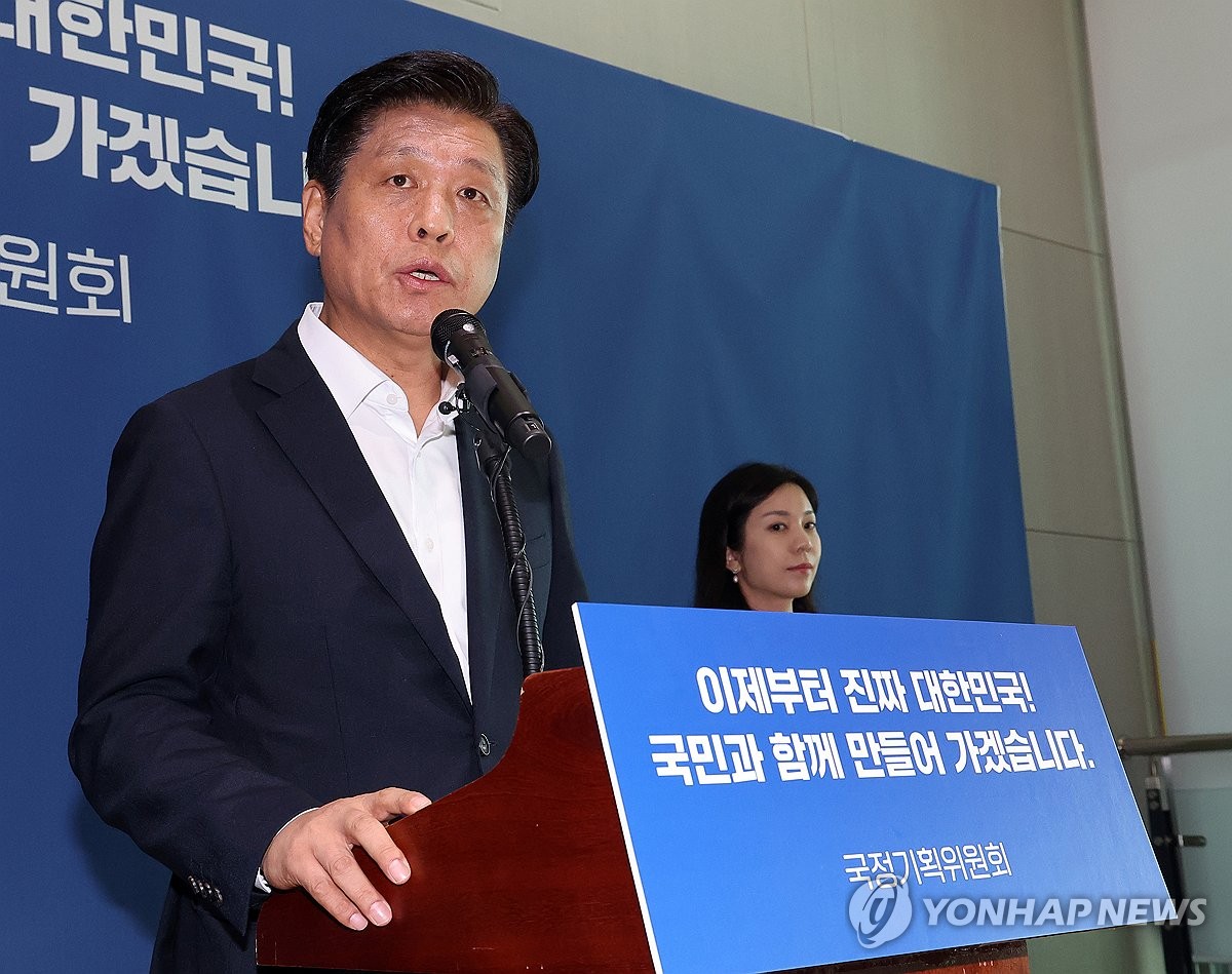 (세종=연합뉴스) 배재만 기자 = 국정기획위원회 조승래 대변인이 19일 정부세종컨벤션센터에서 각 부처 업무보고와 관련한 설명을 하고 있다. 2025.6.19 scoop@yna.co.kr