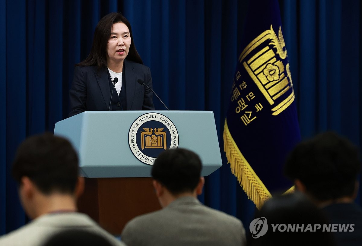 (서울=연합뉴스) 홍해인 기자 = 강유정 대통령실 대변인이 20일 서울 용산 대통령실 청사에서 현안 브리핑을 하고 있다. 2025.6.20 hihong@yna.co.kr