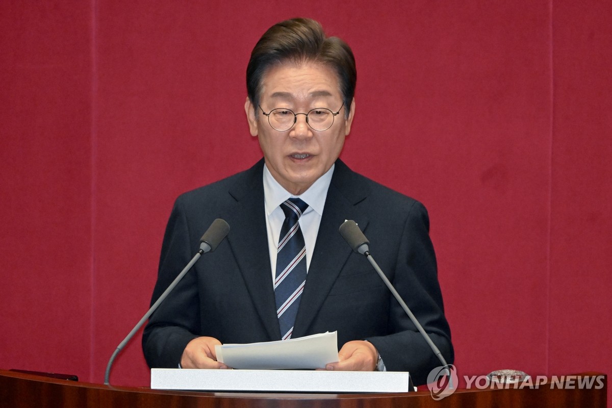 (서울=연합뉴스) 이재명 대통령이 26일 서울 여의도 국회 본회의장에서 정부의 2차 추가경정예산안 제출과 관련해 첫 시정연설을 하고 있다. 2025.6.26 [국회사진기자단] utzza@yna.co.kr