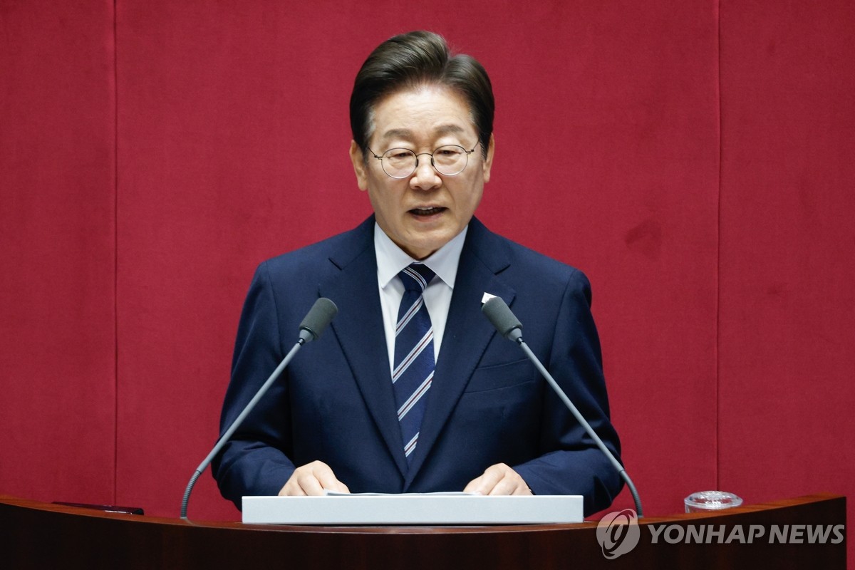 (서울=연합뉴스) 이재명 대통령이 26일 서울 여의도 국회 본회의장에서 정부의 2차 추가경정예산안 제출과 관련해 첫 시정연설을 하고 있다. 2025.6.26 [국회사진기자단] photo@yna.co.kr