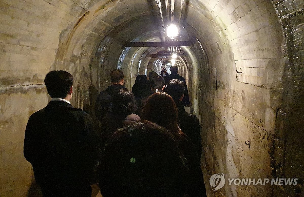 (사도[일본]=연합뉴스) 박성진 특파원 = 사도광산 강제동원 한국인 희생자 유족들이 지난해 11월 25일 일본 니가타현 사도광산 조선인 기숙사 터에서 열린 추도식을 마친 뒤 갱도를 찾아 둘러보고 있다. 2024.11.25 sungjinpark@yna.co.kr