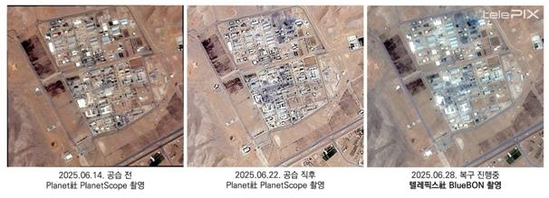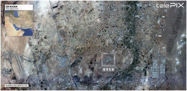 위성 스타트업 텔레픽스는 지난달 22일 미국의 미사일 폭격을 받은 이란 이스파한 핵시설 위성영상 데이터 분석 보고서를 4일 공개했다.