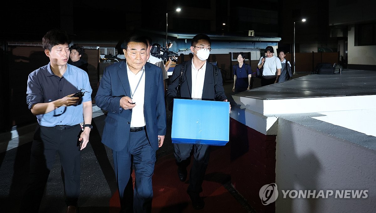 (서울=연합뉴스) 서대연 기자 = 윤석열 전 대통령 배우자 김건희 여사를 둘러싼 각종 의혹을 수사하는 민중기 특별검사팀이 3일 서울 종로구 삼부토건이 입주한 빌딩에서 압수수색을 마친 뒤 압수품을 들고 이동하고 있다. 2025.7.3 [공동취재] dwise@yna.co.kr