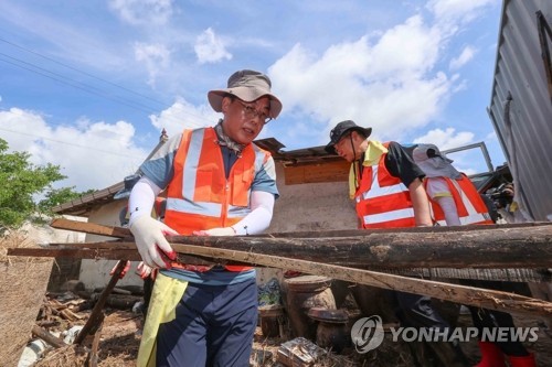 (서울·예산=연합뉴스) 김승욱 조다운 기자 = 국민의힘 의원 40여명은 22일 집중호우로 큰 피해를 본 충남 예산의 수해 지역을 방문해 피해 복구에 손을 보탰다.
