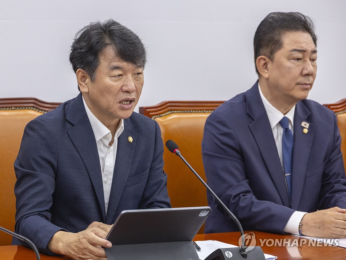 (서울=연합뉴스) 황광모 기자 = 더불어민주당 문진석 원내수석부대표가 22일 국회에서 열린 원내대책회의에서 발언하고 있다. 2025.7.22 hkmpooh@yna.co.kr