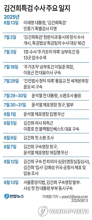 (서울=연합뉴스) 이미령 기자 = 김건희 여사 관련 의혹을 수사하는 민중기 특별검사팀이 12일 모든 의혹의 정점에 있는 김 여사 신병을 확보하면서 앞으로 수사에 속도를 높일 추진력을 얻게 됐다.